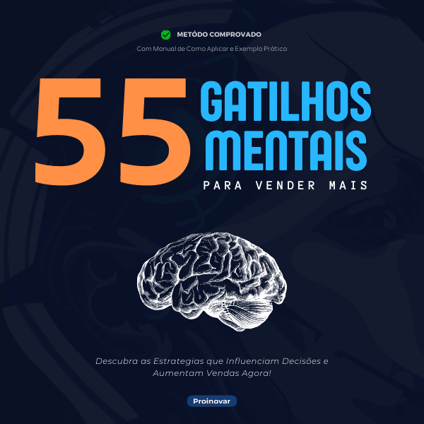 O eBook “55 Gatilhos Mentais para Vender Mais” reúne técnicas comprovadas de especialistas em psicologia, marketing e vendas, aplicadas no mercado físico e digital.